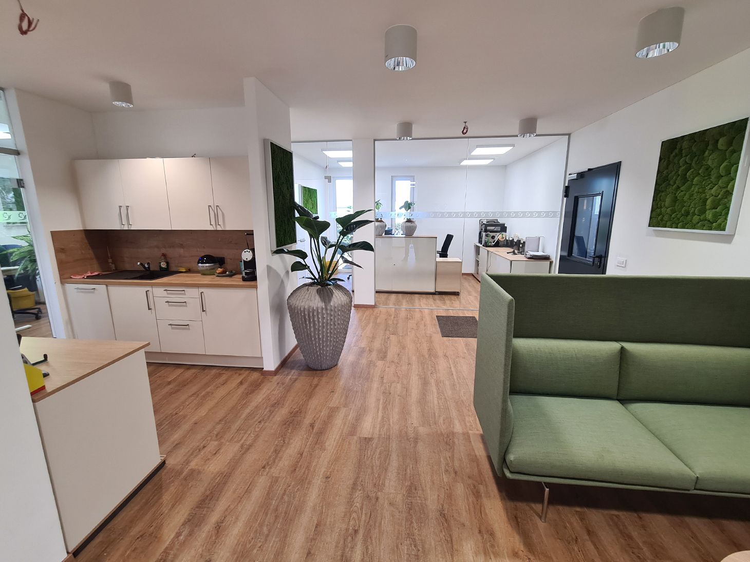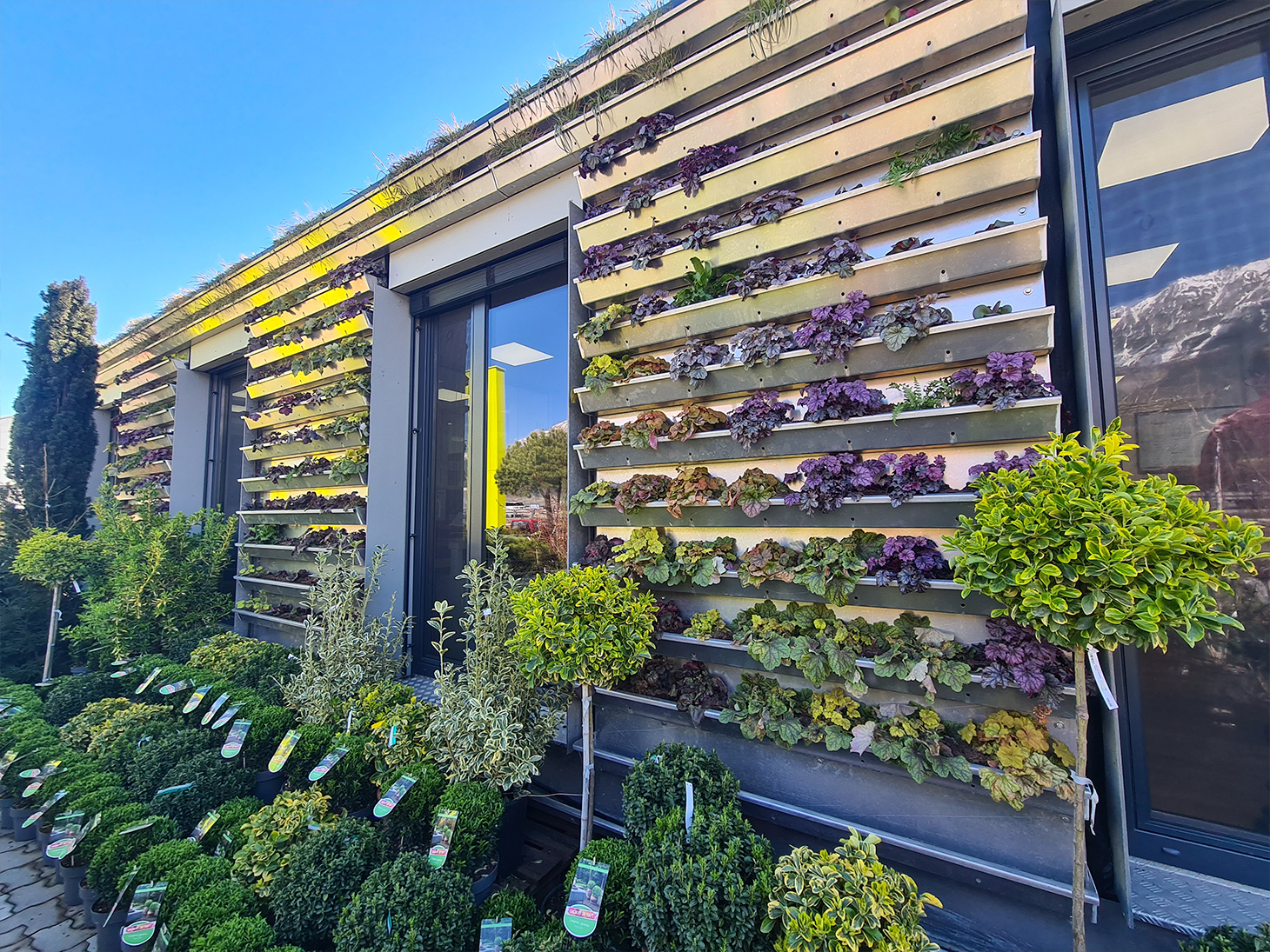 RMB Modul 135 – grünes Büro in Innsbruck, Österreich ist ein modernes, vorgefertigtes, modulares Bürogebäude mit großzügiger Raumaufteilung und luxuriösen Büros. Bei der Gestaltung wurde auf völlige Offenheit geachtet, wodurch die Büros durch Glaswände voneinander getrennt sind. Es umfasst fünf unabhängige Büros, eine Küchenzeile, einen Kopierraum, Toiletten und einen großen Empfangsbereich. Zum Heizen kommt die modernste Methode der Decken- und Fußbodenheizung mit Wärmepumpe zum Einsatz. Mit seinem modularen Aufbau ermöglicht es eine schnellere Einrichtung und Flexibilität je nach Benutzerbedarf. Dieses modulare RMB Gewerbeobjekt dient als Büro für die Gärtnerei Jäger in Innsbruck, weshalb wir von RMB Modulbau eine maßgeschneiderte Lösung für den Kunden entwickelt haben – eine begrünte Fassade mit integriertem Bewässerungssystem. Dieses innovative Design vereint Ästhetik und Nachhaltigkeit, da die Grünfassade nicht nur das Erscheinungsbild des Modulgebäudes verbessert, sondern auch zur Temperaturregulierung und verbesserten Luftqualität beiträgt. Das Bewässerungssystem sorgt für eine optimale Pflanzenpflege ohne zusätzlichen Aufwand. Die individuell gestaltete Fassade zeigt, wie RMB Modulbau erfolgreich innovative und nachhaltige Konzepte nach den Wünschen des Bauherrn umsetzt und eine umweltfreundliche Wohngestaltung realisiert.