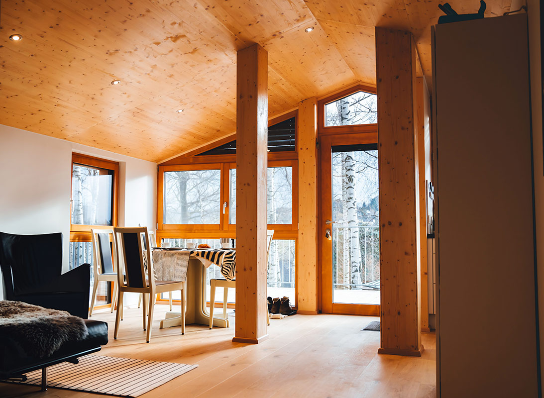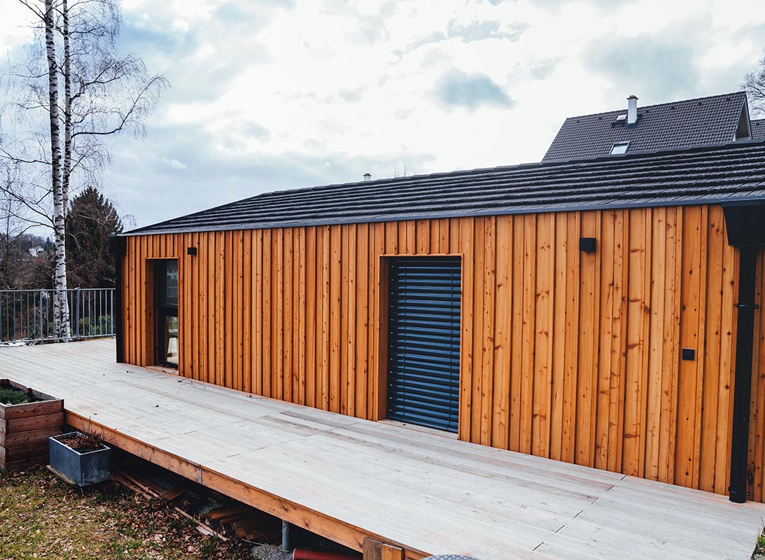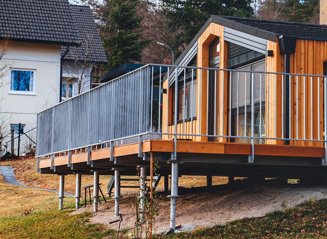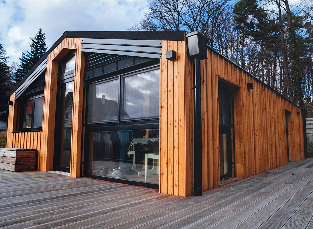 Das RMB HK Modul – Eichgraben, Österreich ist ein modernes modulares Fertighaus, das sich durch seine Funktionalität und Schnelligkeit auszeichnet. Entwickelt mit hochwertigen Materialien und nachhaltigen Lösungen, bietet das Holzhaus einen optimalen Komfort für die Bewohner. Mit seinem A-Frame-Design im Chalet-Stil, einer 3D-Holzfassade, Sichtholz im Innenraum, Holzfenstern und einer RMB-Unterkonstruktion mit integrierter Terrasse für die Aufstellung auf schwierigsten Gelände ist dieses Modulhaus ideal für alle, die eine schnelle und effiziente Lösung für den Wohnraum suchen, sei es für den Daueraufenthalt oder für den Urlaub. Dank des flexiblen Designs kann das Modulhaus perfekt an die spezifischen Bedürfnisse des Kunden angepasst werden.