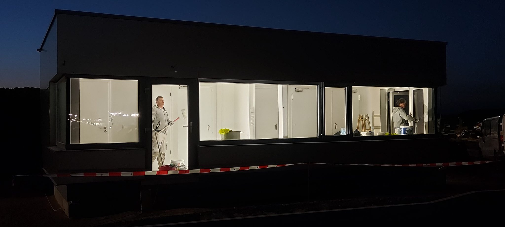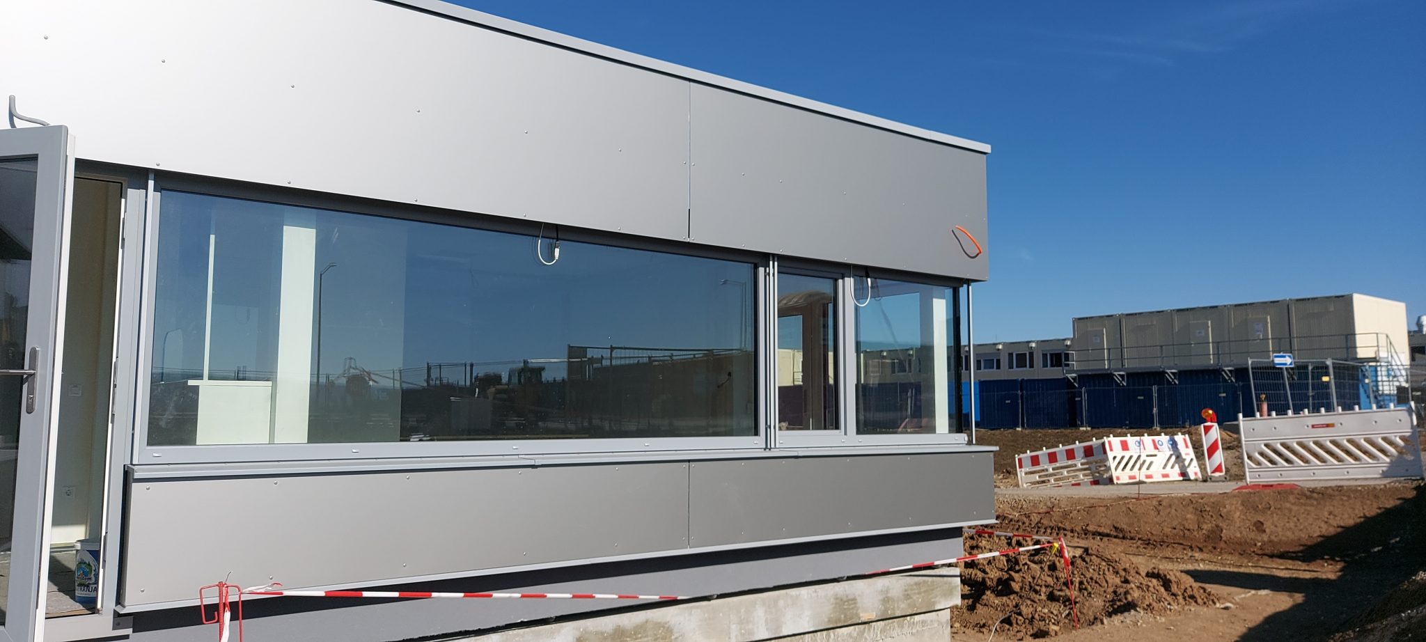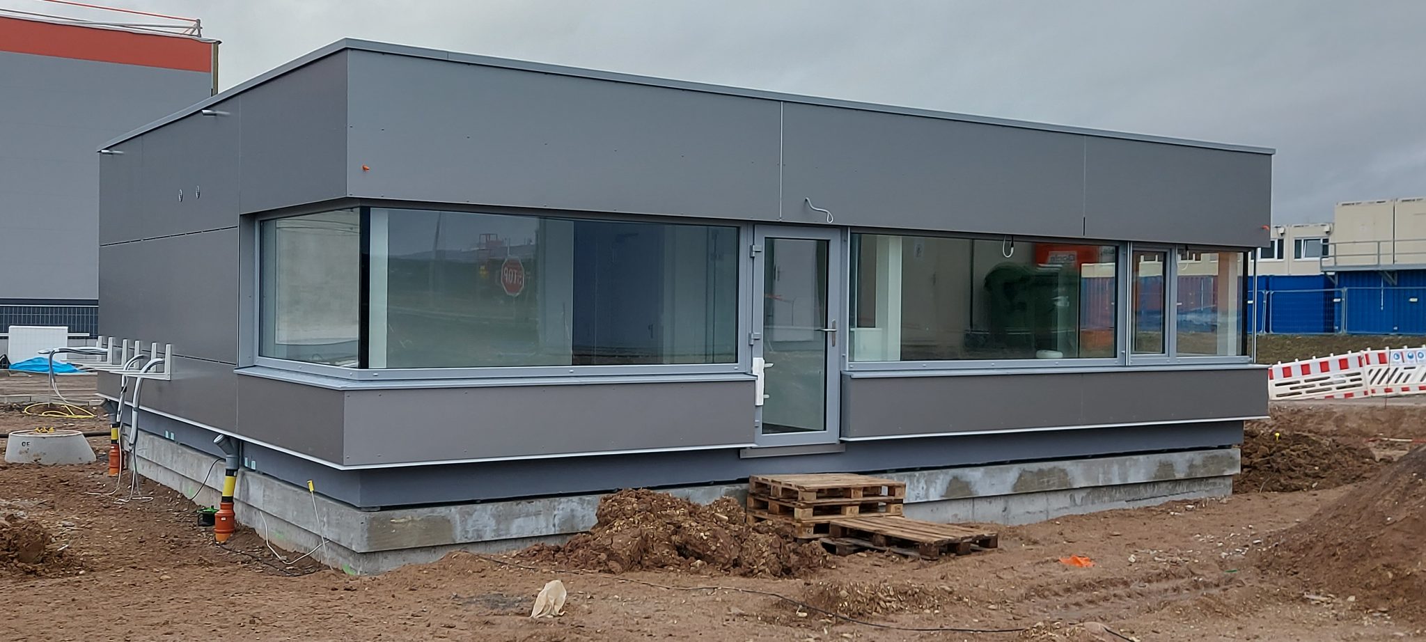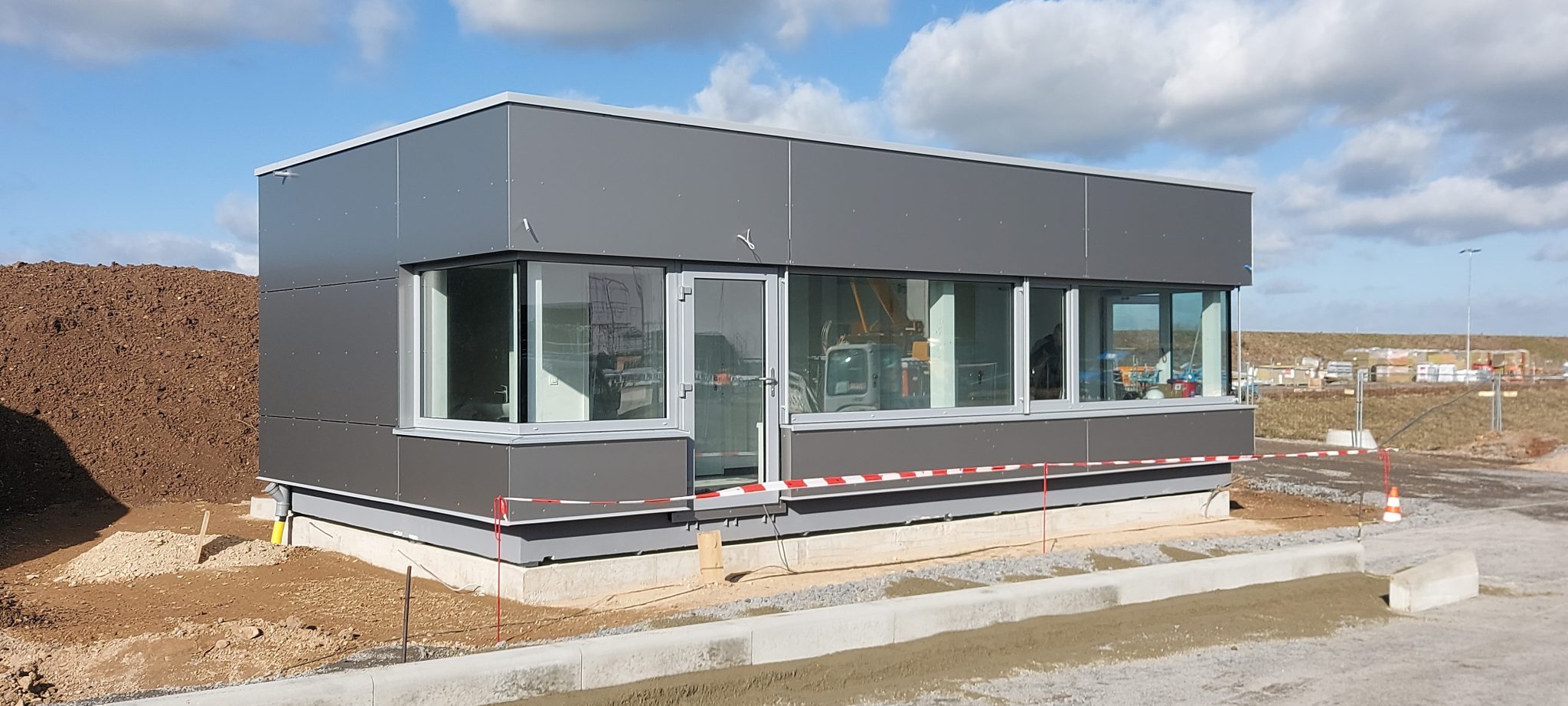 RMB Modul 50 und 108 – Pförtnerhäuser, Arnstadt, Deutschland sind modulare Gewerbeobjekte, die als Pförtnerhäuser im industriellen Umfeld dienen. Diese Module zeichnen sich durch ihre Flexibilität, Funktionalität und Schnelligkeit aus. Die Modulbauweise ermöglicht eine einfache Ausführung von Anlagen in unterschiedliche Umgebungen, was ideal für große gewerbliche Standorte ist. RMB Modulbau hat mit fortschrittlichen Bautechniken nachhaltige und ästhetisch ausgereifte Lösungen geschaffen, die Effizienz und Langlebigkeit bieten. Die Objekte erfüllen die höchsten Standards der Industrieausführung wie die Brandschutzausführung REI 90, das geschweißte Linoleum auf dem Boden, die Belüftung, die ALU-Fassade und Glasflächen die übers Eck verlaufen, was im modularen Bau eine große Besonderheit darstellt.
