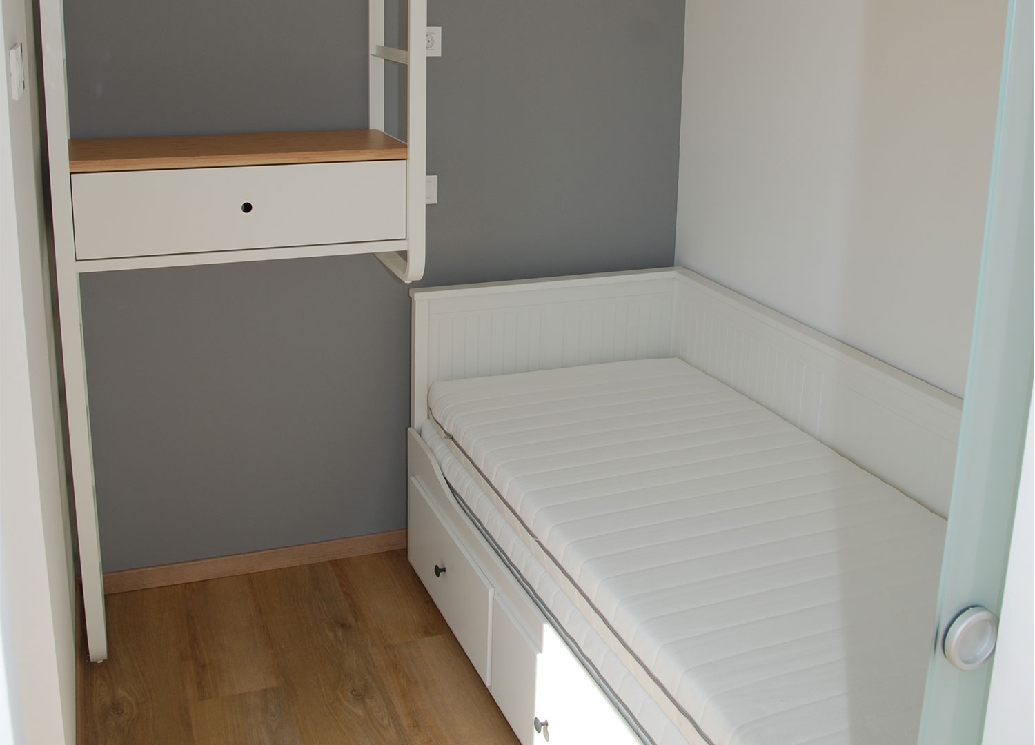 RMB Modul 40 definiert das Wort „komfortabel“ in der Welt der Modulhäuser neu. Modern gestaltet und modern, bietet dieses exklusive modulare Fertighaus den idealen Ort zum Rückzug und Entspannen. Das Modulhaus ist ein komfortables Objekt für 2-4 Personen, mit einem Wohnbereich mit Küche, einem Schlafzimmer mit Ankleideraum, einem geräumigen Badezimmer und einem kleinen Abstellraum, der alles Notwendige für einen angenehmen Aufenthalt auf kleinem Raum bietet.