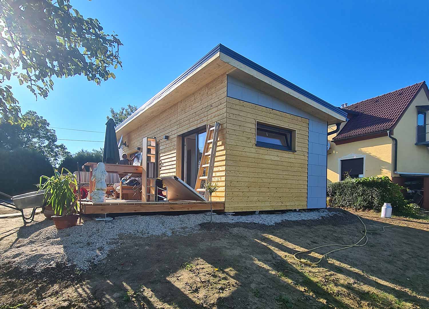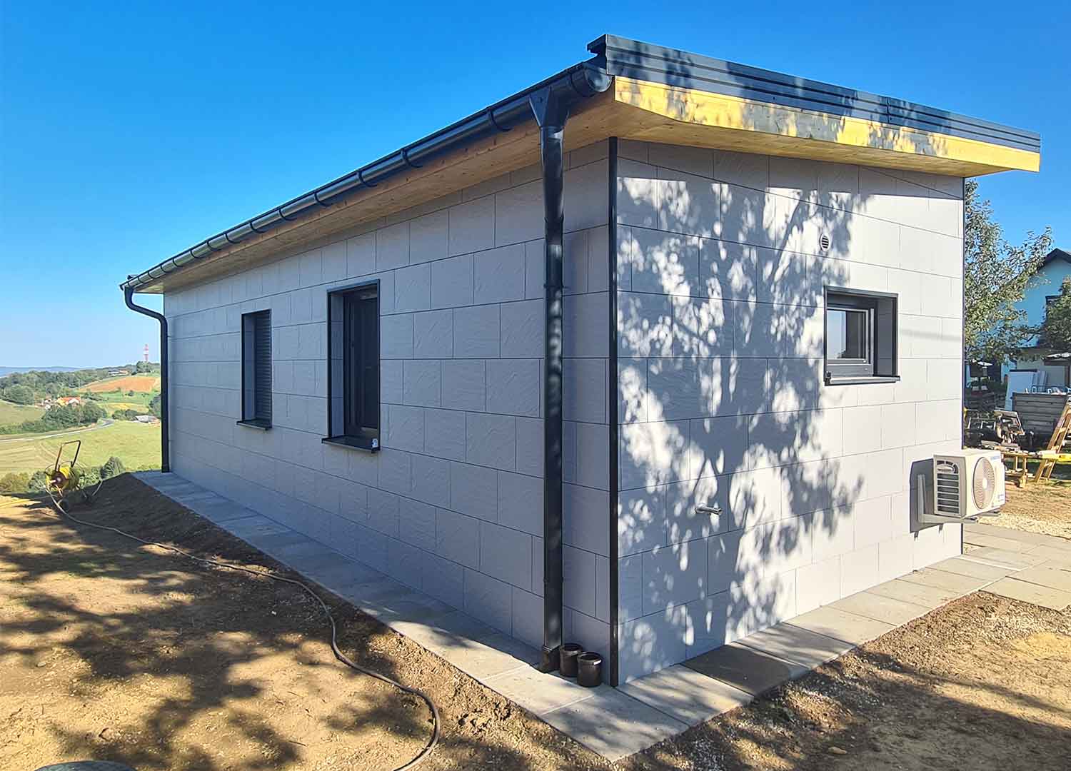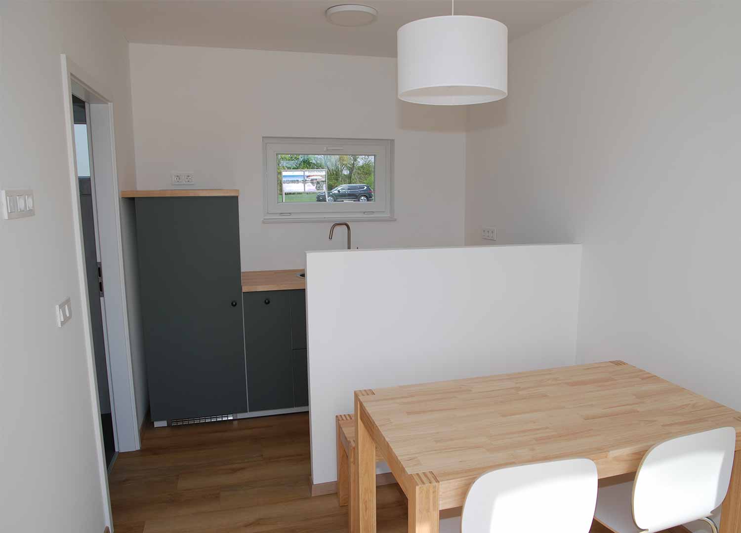 Wir haben ein Modulhaus entwickelt, das sich ideal für verschiedene Lebensstile und Bedürfnisse eignet. Dieses modulare Fertighaus ist die perfekte Lösung sowohl für ein dauerhaftes Zuhause für zwei Personen als auch für ein Ferienhaus am Meer, in den Bergen, im Weinberg oder anderswo. Das RMB Modul 50 wurde speziell für einen komfortablen Aufenthalt auf kleinem Raum entwickelt, wobei der Schwerpunkt auf Funktionalität und Komfort liegt. Einer der Vorteile dieses Modulhauses ist die schnelle Montage vor Ort, mit dem Sie Ihr neues Haus in kürzester Zeit beziehen können. Es wurde mit Blick auf Langlebigkeit und Flexibilität entwickelt, was es zur idealen Wahl für eine Vielzahl von Standorten und Anwendungen macht.